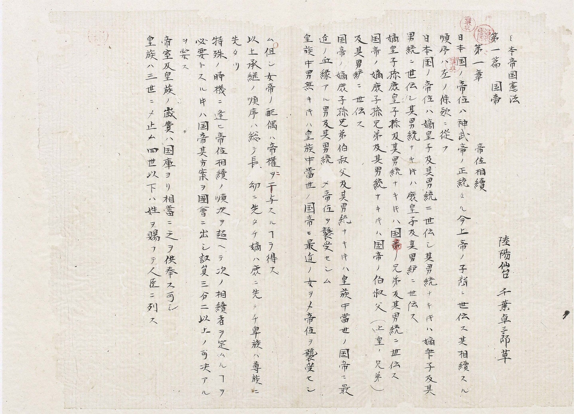 ①五日市憲法草案(正式名:日本帝国憲法)